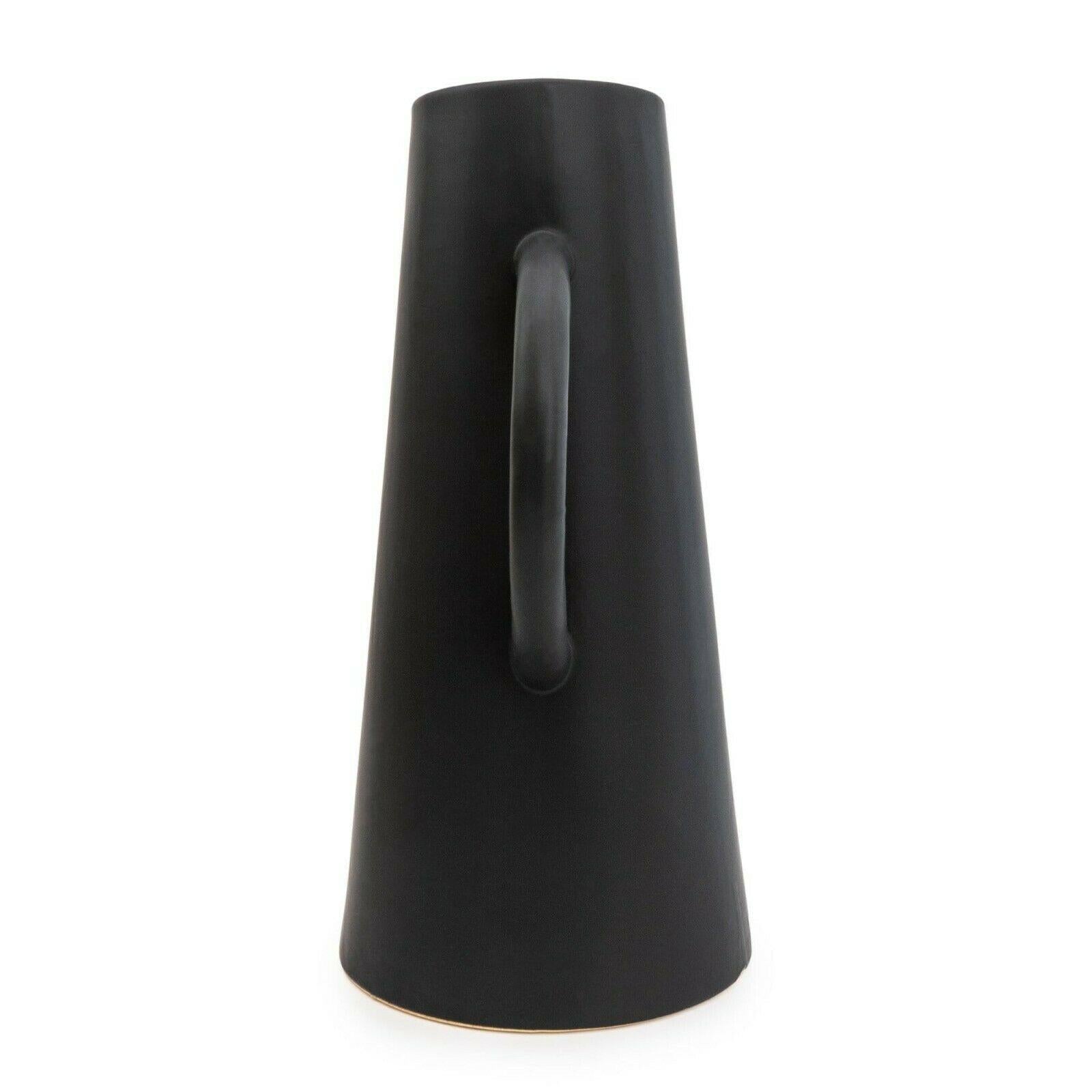 House your favourite stems in this versatile black vase with handles, neatly cast in a sleek black colour. Faux flowers will radiate the entirety of their charm, anchored by this luxe homeware piece, across the home, or in private garden spaces and patios.