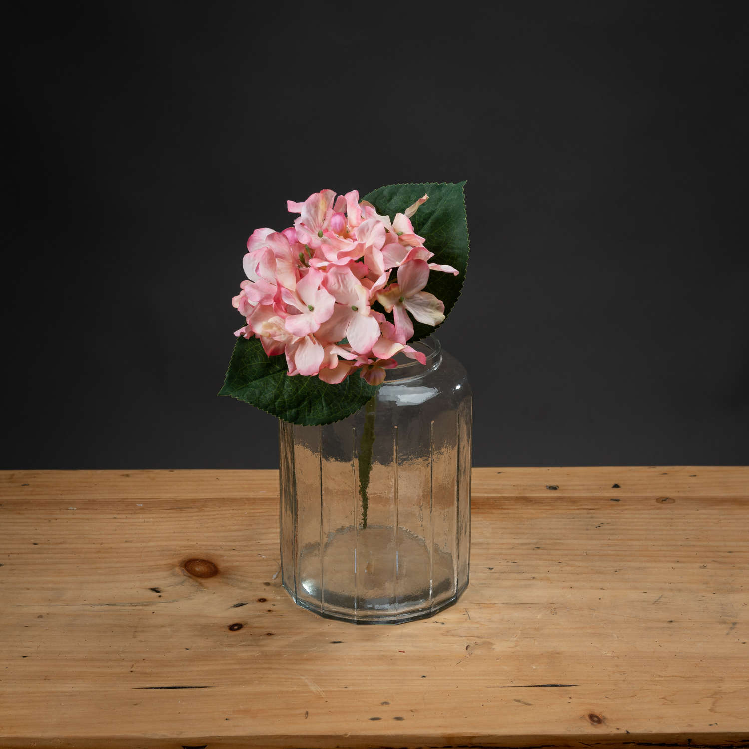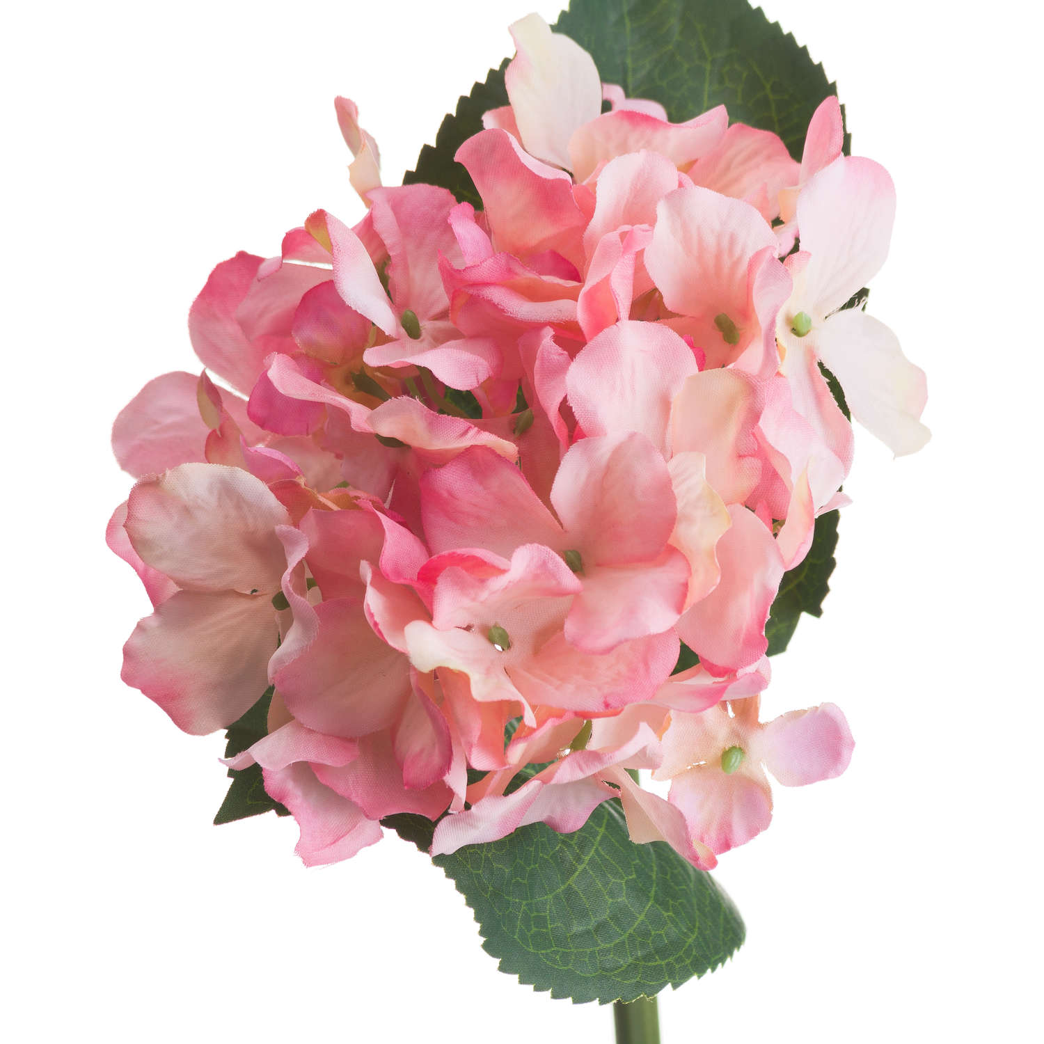Single stem small hydrangea heads in a soft pink colour.